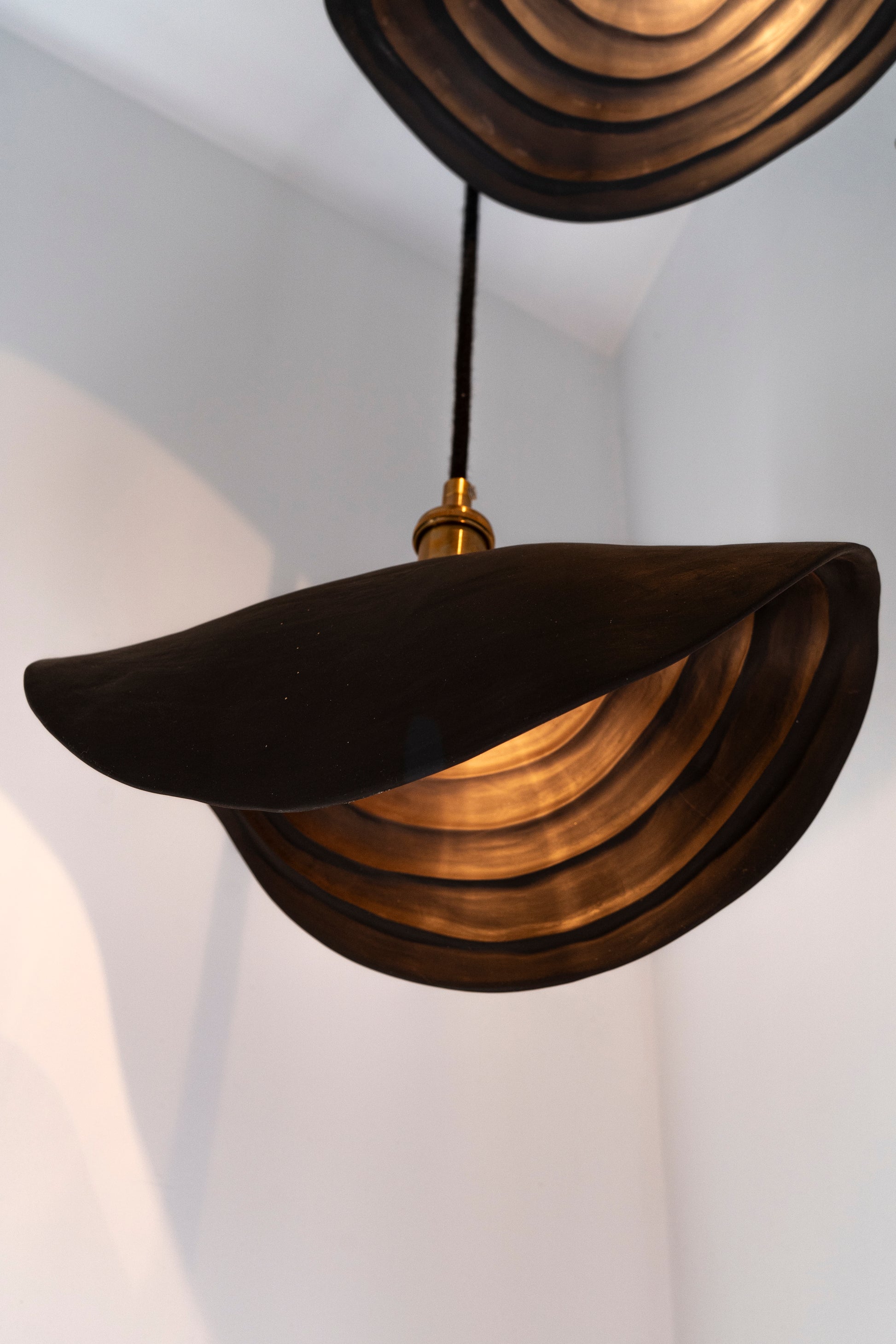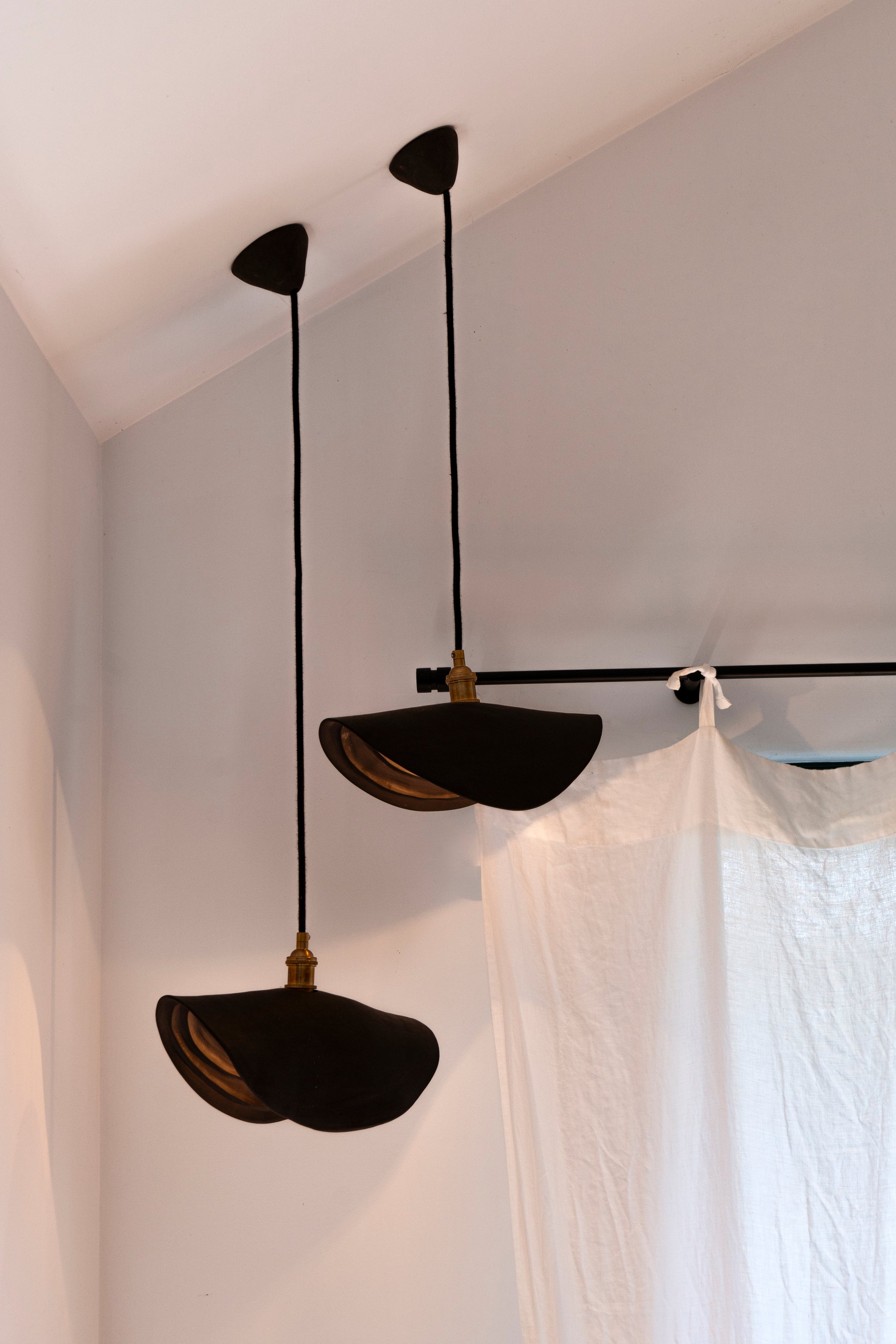 Suspended from a matching black porcelain ceiling rose, the Brava pendant maintains a cohesive, refined design. Each piece is uniquely handcrafted, ensuring no two are exactly alike and making every pendant a truly one-of-a-kind work of art.